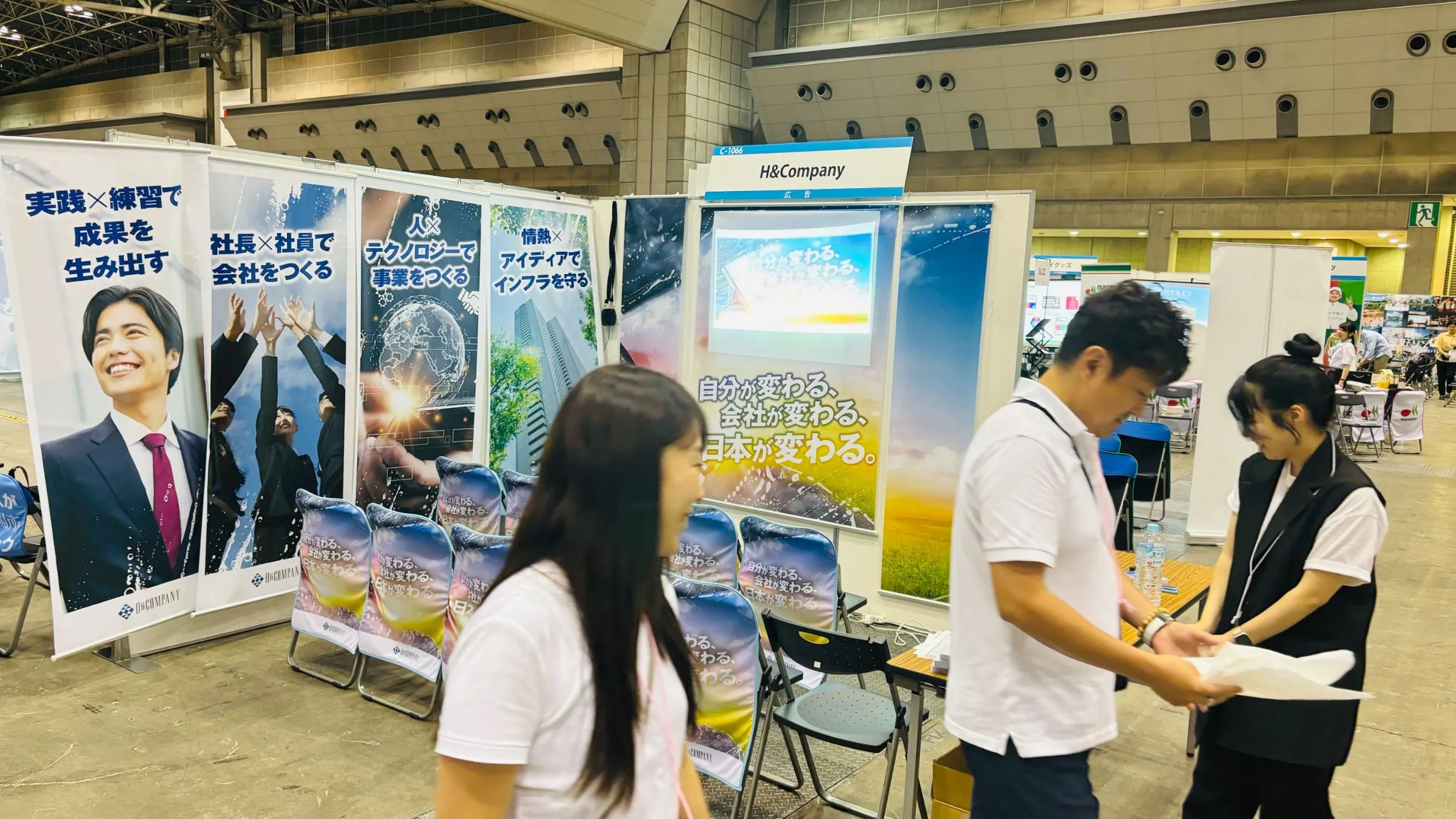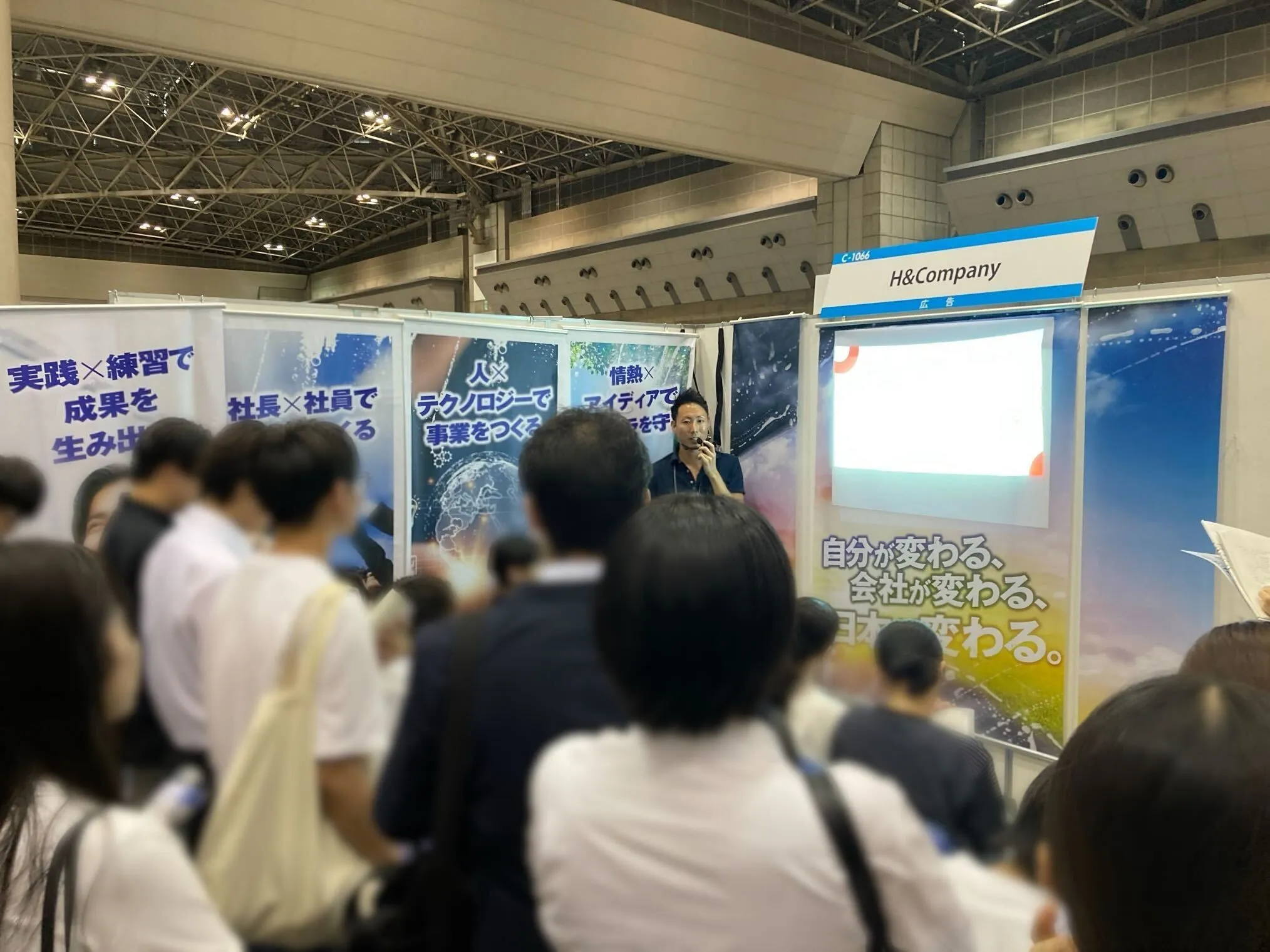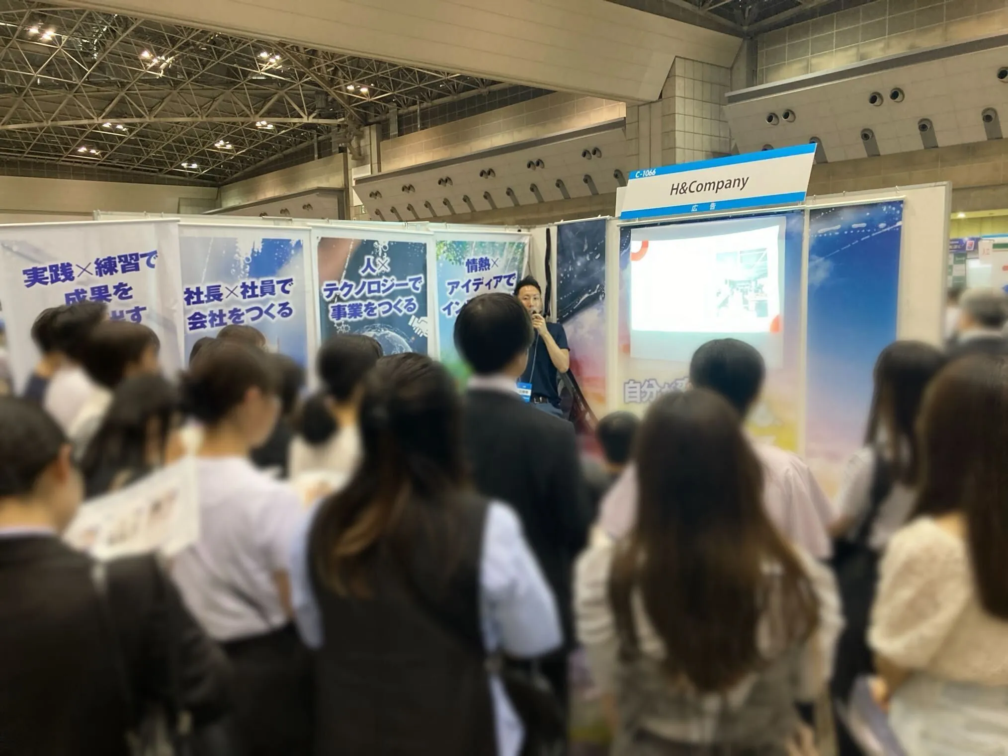 H&Companyのブースは、前回よりも入り口から遠い位置だったので、実は今回の方が学生さんに見つけてもらうのは大変なんじゃないかと事前の打ち合わせで話をしていました。