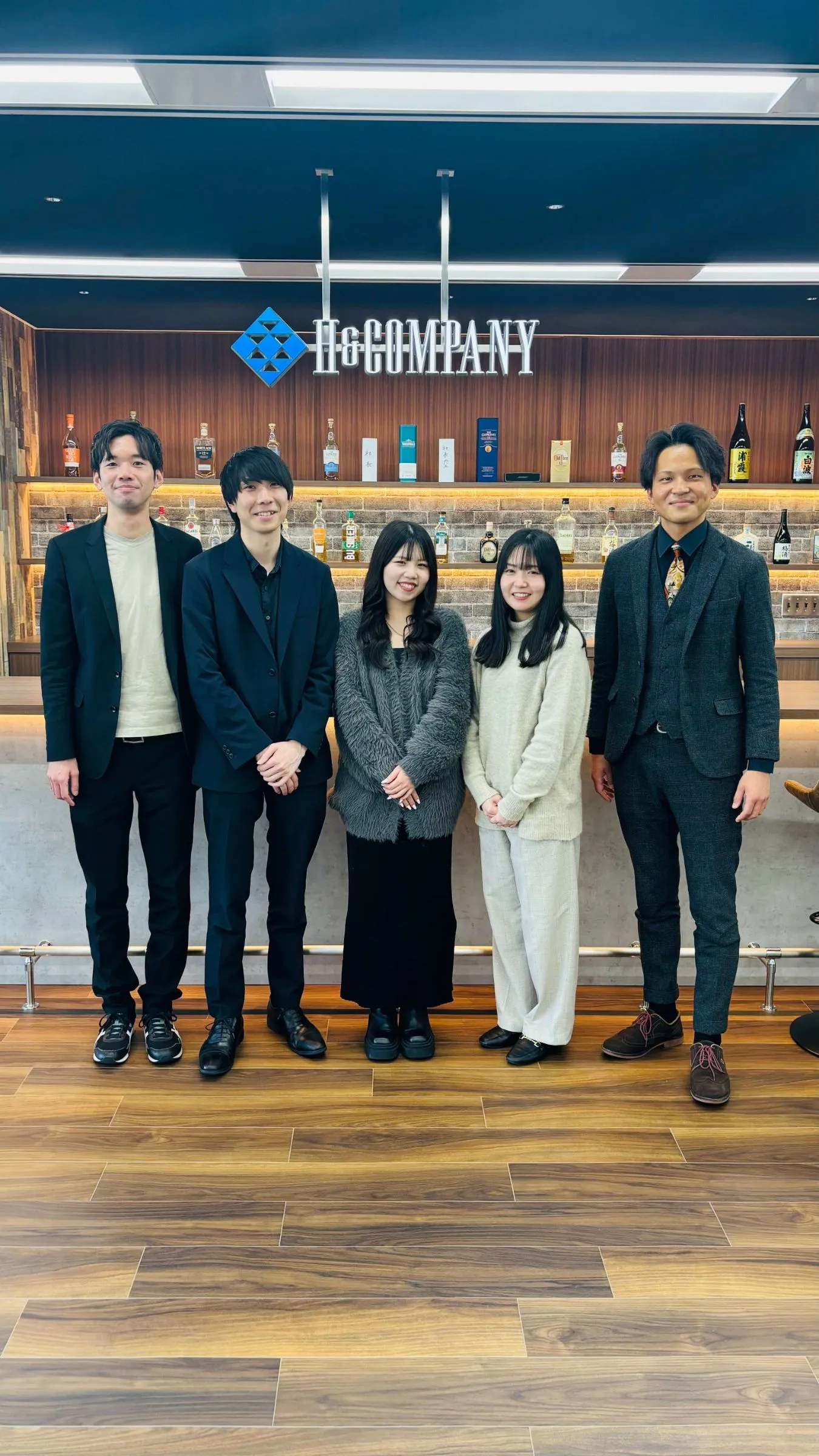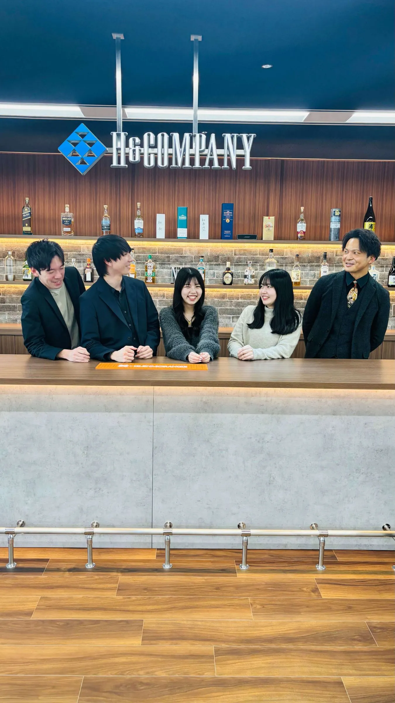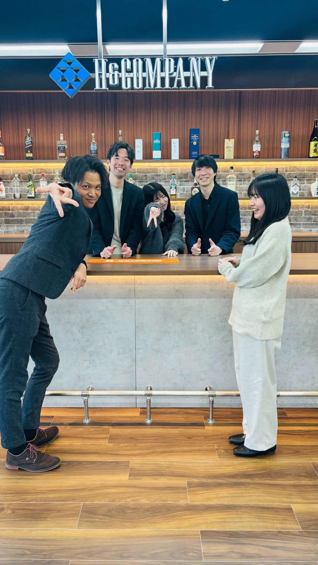 よりよい求人にするため、バーカウンター前に集結した営業チーム。